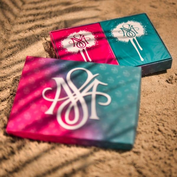 Die Double Box im sommerlichen Pink/Teal Fade Design ist auf 111 Exemplare limitiert und enthält neben dem 1x Teal Deck & 1x Pink Deck noch zusätzlich 8 Gaffkarten und das zugehörige Gaff – Tutorial, plus einen 50% Rabattcode für meinen Effekt „Your Name“ (Release am 18.08.21)